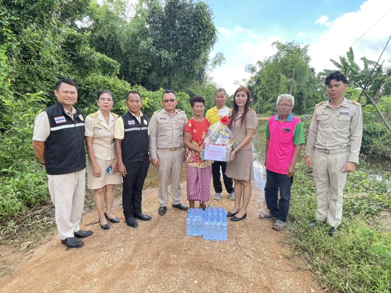 องค์การบริหารส่วนตำบลโนนสำราญมอบถุงยังชีพผู้ประสบอุทกภัย นางนวลจันทร์ หาญบุ่งคล้า บ้านแจ้งน้อย หมู่ 5 ตำบลโนนสำราญ อำเภอเมือง จังหวัดชัยภูมิ