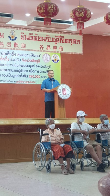ในการนี้ ได้รับความอนุเคราะห์และการประสานความช่วยเหลือจากสำนักงานพัฒนาสังคมและความมั่นคงของมนุษย์จังหวัดชัยภูมิและมูลนิธิสว่างคุณธรรมชัยภูมิ