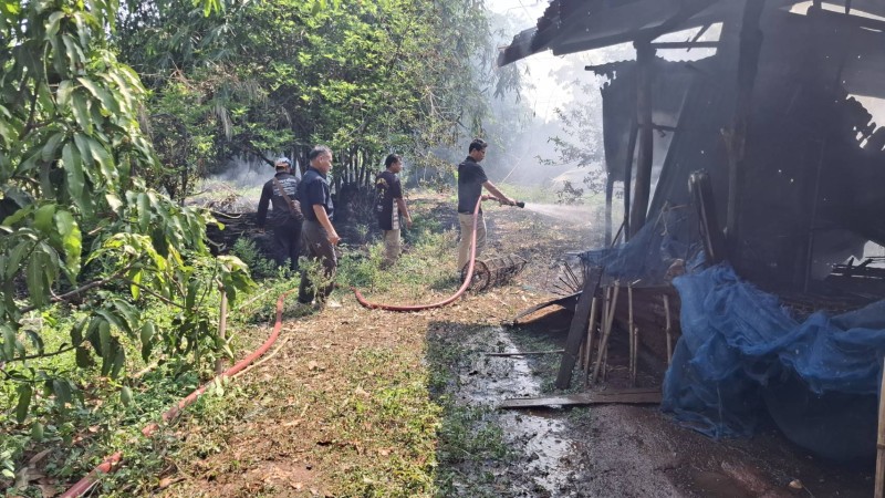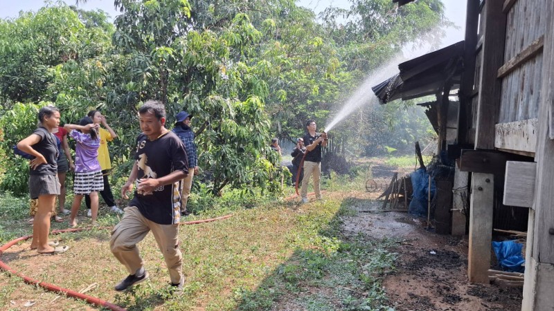 งานป้องกันฯได้รับแจ้งเหตุเพลิงไหม้หญ้าลามจะเข้ายุ้งฉาง บ้านดอนขวาง หมู่ที่ 4