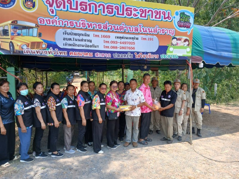 พร้อมกันนี้ ได้มอบสิ่งของเพื่อเป็นขวัญและกำลังใจแก่เจ้าหน้าที่ผู้ปฏิบัติงานประจำจุดบริการ จำนวน 2 จุด ได้แก่ จุดตรวจองค์การบริหารส่วนตำบลโนนสำราญ และจุดตรวจโรงเรียนบ้านแจ้งน้อย